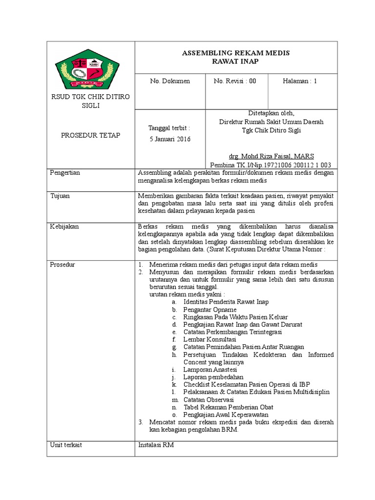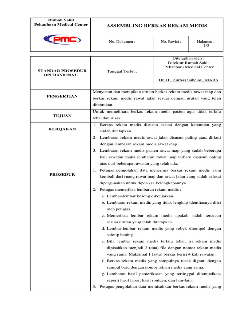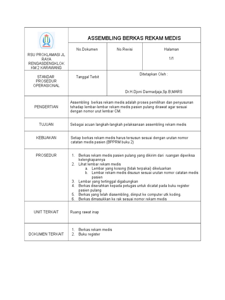 Sop Assembling Berkas Rekam Medis Ylyxzyd1kenm